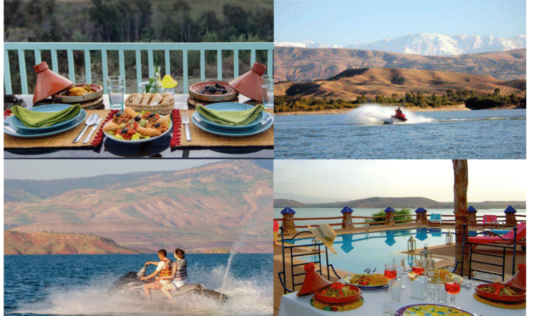 Profitez d’une journée complète de détente et d’aventure au Barrage Lalla Takerkoust ! Commencez par un délicieux déjeuner avec une vue imprenable sur le lac, puis détendez-vous dans la piscine ou ressentez les sensations fortes du jet ski sur les eaux cristallines. Une expérience parfaite pour combiner relaxation et adrénaline dans un cadre naturel exceptionnel.