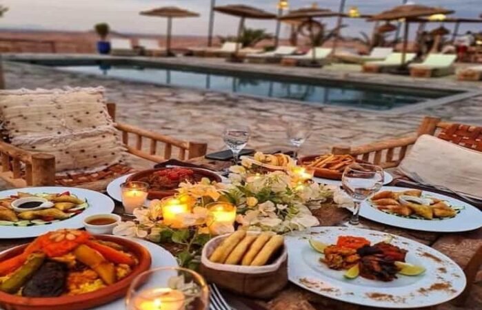 Vivez une expérience VIP inoubliable au cœur du désert d’Agafay ! Profitez d’un déjeuner marocain raffiné suivi d’un accès exclusif à une piscine luxueuse, le tout avec un transport privé aller-retour inclus.